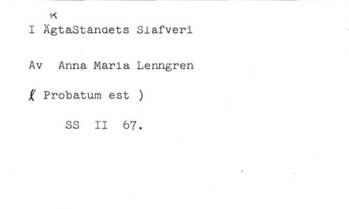 I ÄgtaStanctets Slafveri //// Av Anna Maria Lenngren f Probatum est ) SS II 67.