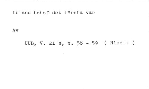 Ibland behof det första var Av //// UUB, V. 1 s, s. 5t3 - 59 ( Risell )