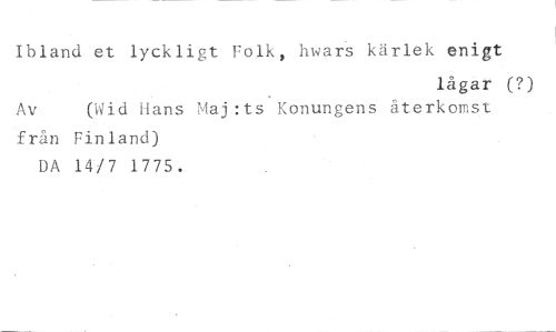 Ibland et lyckligt Folk, hwars kärlek enigt //// lågar (?) //// Av (Wid Hans Maj:ts Konungens återkomst //// från Finland) DA 14/7 1775.