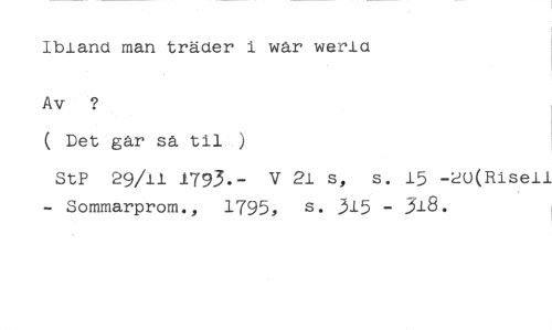 Ibland man träder i war werlo //// Av ? //// ( Det går så til ) //// StP 29/11 1793.- V 21 s, s. 15 -20(Risell Sommarprom., 1795, s. 315 - 318.