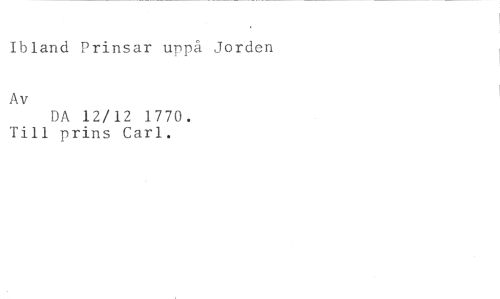 Ibland Prinsar uppå Jorden //// Av //// DA 12/12 1770. Till prins Carl.