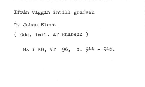 Ifrån vaggan intill grafven //// AV Johan Elers. //// ( Ode. Imit. af Rhabeck ) //// Hs i KB, Vf 96, s. 944 - 946.