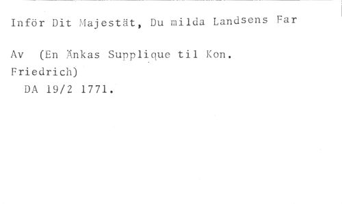 Inför Dit Majestät, Du milda Landsens Far //// Av (En Änkas Sunplique til Kon. Friedrich) //// DA 19/2 1771.
