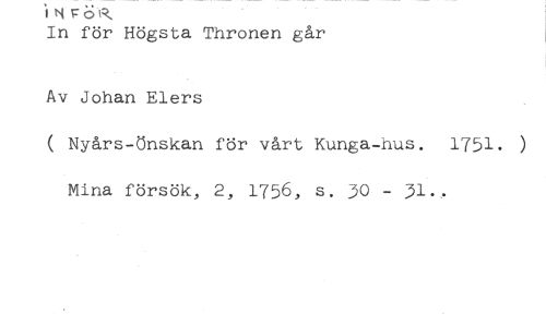 ihtF‘Cd //// In för Högsta Thronen går //// Av Johan Elers //// ( Nyårs-Önskan för vårt Kunga-hus. 1751. ) Mina försök, 2, 1756, s. 30 - 31..