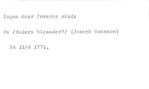 Ingen ömax Josephs skada //// Av /Anders Nicander?/ (Joseph Hansson) DA 15/8 1771.