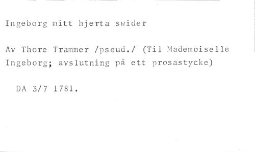 Ingeborg mitt hjerta svider //// Av Thore Trammer /pseud./ (Til Mademoiselle Ingeborg; avslutning på ett prosastycke) //// 3/7 1781.