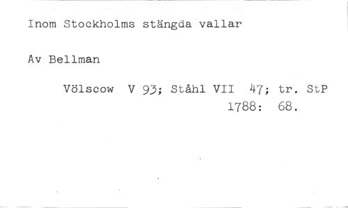 Inom Stockholms stängda vallar Av Bellman //// Völscow V 93; Ståhl VII 47; tr. StP //// 1788: 68.