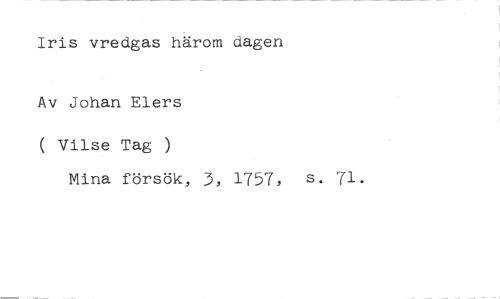 Iris vredgas härom dagen Av Johan Elers //// ( Vilse Tag ) //// Mina försök, 3, 1757, s. 71.