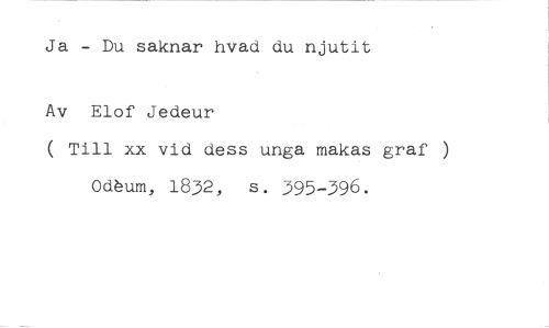 Ja - Du saknar hvad du njutit //// Av Elof Jedeur //// ( Till xx vid dess unga makas graf ) Odåum, 1832, s. 395-396.