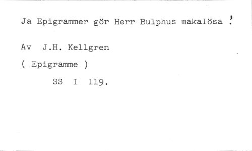 Ja Epigrammer gör Herr Bulphus makalösa ! //// Av J.H. Kellgren ( Epigramme //// SS I 119.