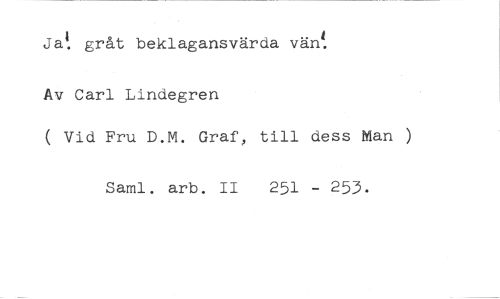 Jat gråt beklagansvärda väni. //// Av Carl Lindegren //// ( Vid Fru D.M. Graf, till dess Man ) //// Saml. arb. II 251 - 253.