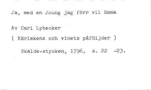 Ja, med en Joung jag förr vil ömma //// Av Carl Lybecker //// ( Kärlekens och vinets påföljder //// Skalde-stycken, 1796, s. 22 -23.