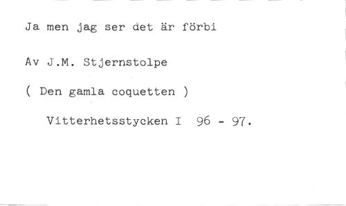 Ja men jag ser det är förbi //// Av J.M. Stjernstolpe //// ( Den gamla coquetten ) Vitterhetsstycken 1 96 - 97.