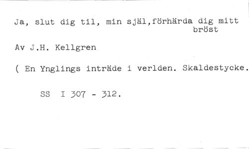 Ja, slut dig til, min själ,förhärda dig mitt //// bröst //// Av J.H. Kellgren //// ( En Ynglings inträde i verlden. Skaldestycke. //// SS I 307 - 312.