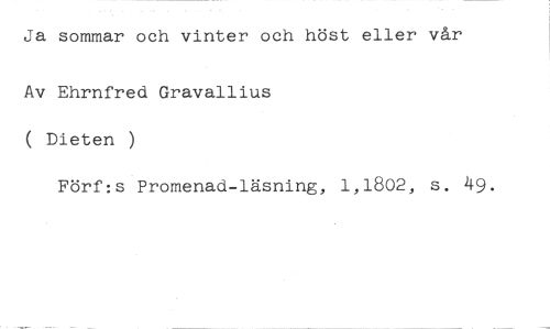 Ja sommar och vinter och höst eller vår //// Av Ehrnfred Gravallius ( Dieten ) //// Förf:s Promenad-läsning, 1,1802, s. 49.