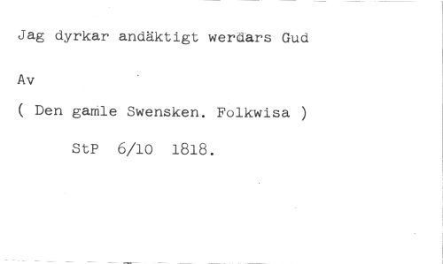 Jag dyrkar andäktigt werdars Gud //// Av //// ( Den gamle Swensken. Folkwisa ) //// stP 6/10 1818.