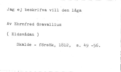Jag ej beskrifva vill den låga //// Av Ehrnfred Gravallius ( Eldsvådan ) //// Skalde - försök, 1812, s. +9 -56.