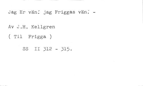 Jag Er vän: jag Friggas vän: - //// Av J.H. Kellgren ( Til Frigga ) //// SS II 312 - 315.
