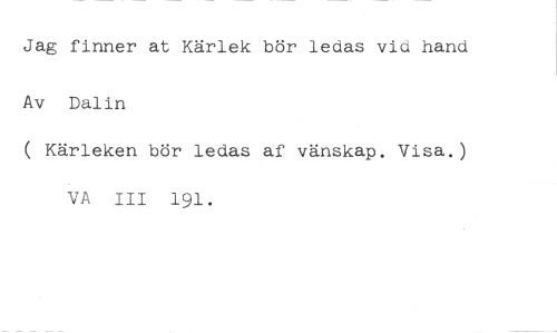 Jag finner at Kärlek bör ledas vid hand //// Av Dalin //// ( Kärleken bör ledas af vänskap. Visa.) VA III 191.