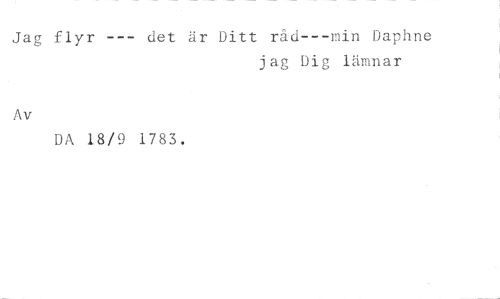 Jag flyr --- det är Ditt råd---min Daphne //// jag Dig lämnar //// Av //// DA 18/9 1783.