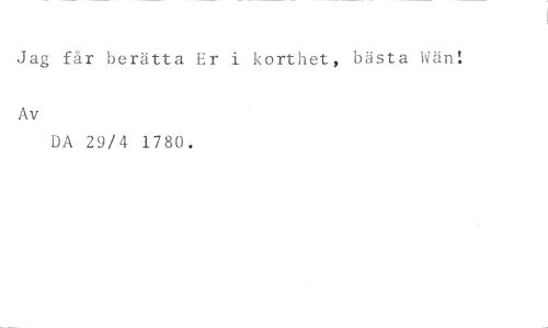Jag får berätta Er i korthet, bästa Wän: //// Av //// DA 29/4 1780.