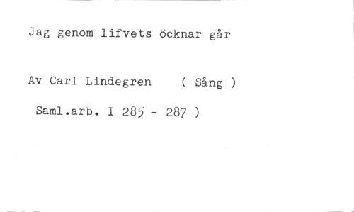 Jag genom lifvets öcknar går //// Av Carl Lindegren ( Sång ) //// Saml.arb. I 285 - 287 )