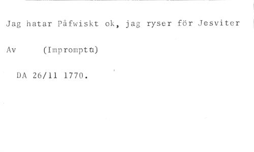 Jag hatar Påfwiskt ok, jag ryser för Jesviter //// Av (Impromptu) //// DA 26/11 1770.