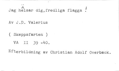 Ä //// Jag helsar dig,fredliga flagga ! //// Av J.D. Valerius //// ( Skeppsfarten ) VA II 39 -40. //// Efterbildning av Christian Adolf Overbäck.
