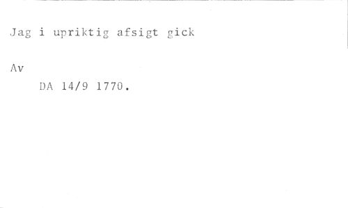 Jag i upriktig afsigt gick //// Av //// DA 14/9 1770.