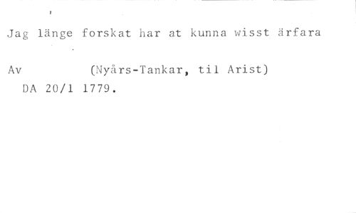Jag länge forskat har at kunna wisst ärfara //// Av (Nyårs-Tankar, til Arist) //// DA 20/1 1779.