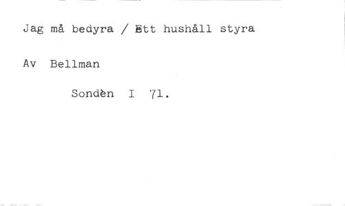 Jag må bedyra / Ett hushåll styra //// Av Bellman //// Sondn I 71.