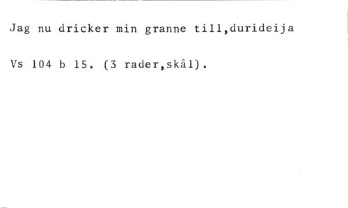 Jag nu dricker min granne till,durideija //// Vs 104 b 15. (3 rader,skål).