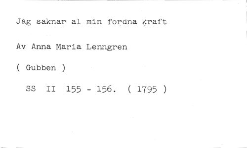 Jag saknar al min fordna kraft //// Av Anna Maria Lenngren ( Gubben ) //// SS II 155 - 156. ( 1795 )