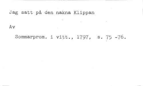 Jag satt på den nakna Klippan //// Av //// Sommarprom. i vitt., 1797, s. 75 -76.