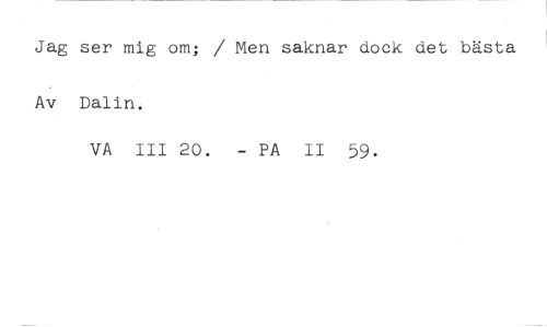 Jag ser mig om; / Men saknar dock det bästa //// Av Dalin. //// VA III 20. - PA II 59.