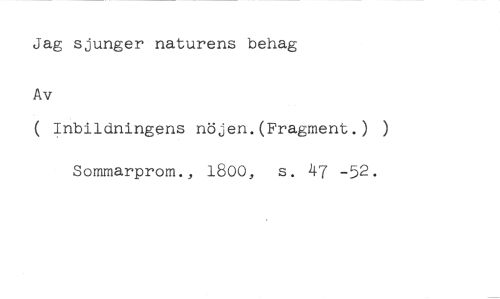 Jag sjunger naturens behag //// Av //// ( Inbildningens nöjen.(Fragment.) ) //// Sommarprom., 1800, s. 47 -52.