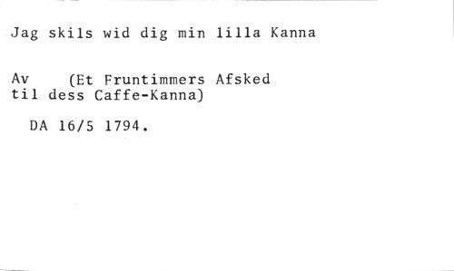 Jag skils wid dig min lilla Kanna //// Av (Et Fruntimmers Asked //// til dess Caffe-Kanna) //// DA 16/5 1794.
