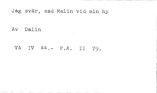 Jag svär, sad Malin vid min hy Av Dalin //// VA IV 44.- P.A. II 79.