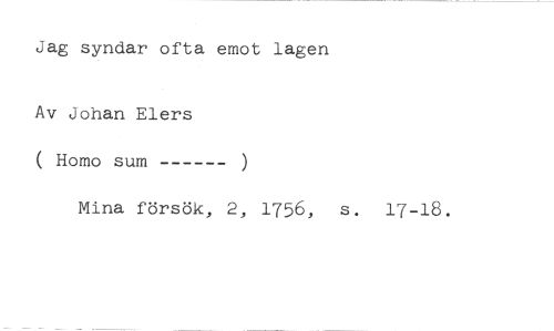 Jag syndar ofta emot lagen //// Av Johan Elers ( Homo sum //// Mina försök, 2, 1756, s. 17-18.
