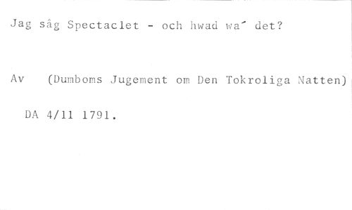 Jag såg Spectaclet - och hwad wa' det? //// Av (Dumboms Jugement om Den Tokroliga Natten) //// DA 4/11 1791.