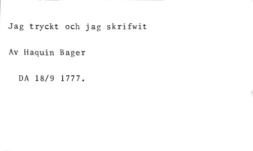 Jag tryckt och jag skrifwit //// Av Haquin Bager //// DA 18/9 1777.