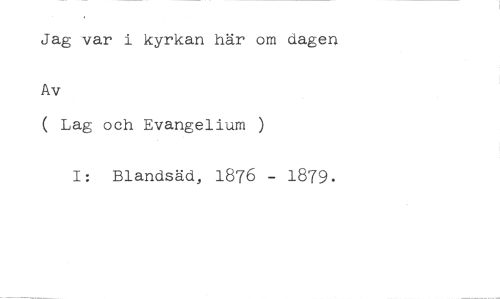 Jag var i kyrkan här om dagen //// Av //// ( Lag och Evangelium ) //// I: Blandsäd, 1876 - 1879.