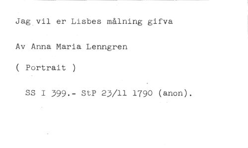 Jag vil er Lisbes målning gifva //// Av Anna Maria Lenngren ( Portrait ) //// SS 1 399.- StP 23/11 1790 (anon).