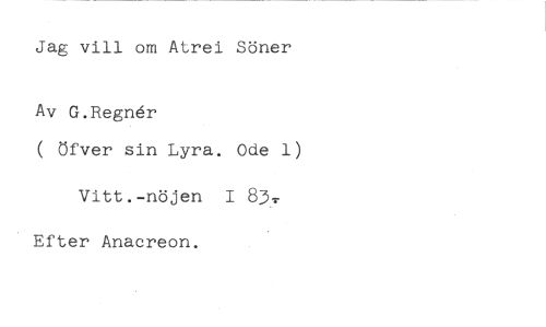 Jag vill om Atrei Söner //// Av G.RegrAr //// ( Öfver sin Lyra. Ode 1) //// Vitt.-nöjen I 83.. Efter Anacreon.