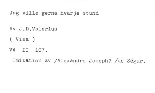 Jag ville gerna hvarje stund //// Av J.D.Valerius //// ( Visa ) //// VA II 107. //// Imitation av /Alexandre Joseph? /de Sgur.