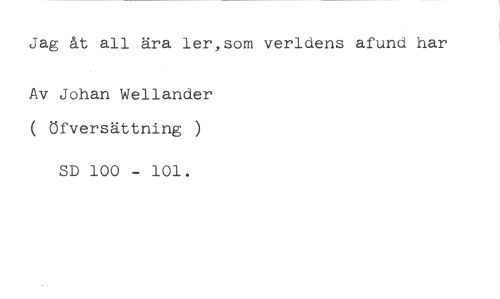 Jag åt all ära ler,som verldens afund har //// Av Johan Wellander ( öfversättning ) //// SD 100 - 101.