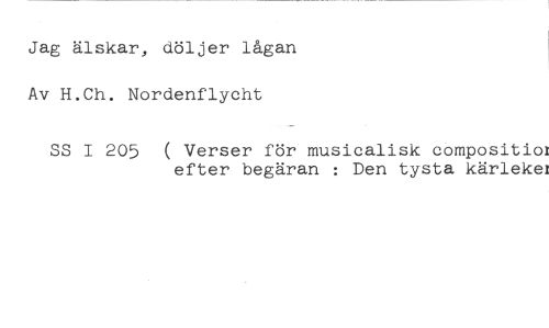 Jag älskar, döljer lågan Av H.Ch. Nordenflycht //// SS I 205 ( Verser för musicalisk compositiox efter begäran : Den tysta kärleket