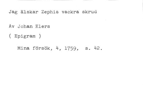 Jag älskar Zephis vackra skrud. //// Av Johan Elers ( Epigram ) //// Mina försök, 4, 1759, s. 42.