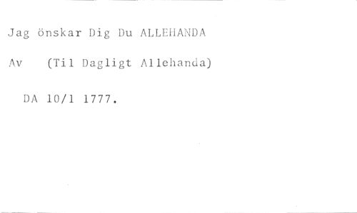 Jag önskar Dig Du ALLEHANDA //// Av (Til Dagligt Allehanda) //// DA 10/1 1777.