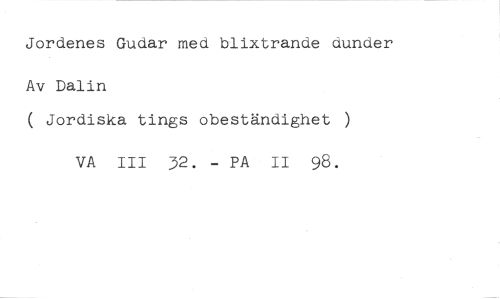 Jordenes Gudar med blixtrande dunder //// Av Dalin //// ( Jordiska tings obeständighet ) //// VA III 32. - PA II 98.